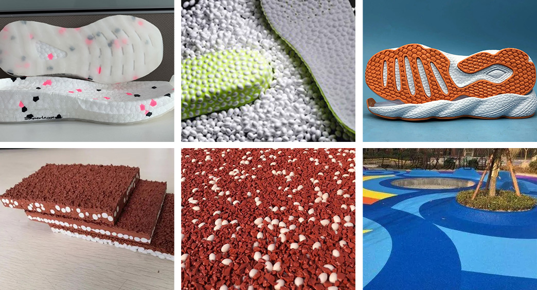 CO2發(fā)泡技術(shù)生產(chǎn)出來(lái)的E-TPE發(fā)泡顆粒以及EVA顆粒在各種運(yùn)動(dòng)鞋鞋底和鞋中底廣泛應(yīng)用,比以往傳統(tǒng)技術(shù)生產(chǎn)出來(lái)的發(fā)泡顆粒重量輕,彈性好,緩沖減震效果好,這種產(chǎn)品生產(chǎn)出來(lái)的鞋底被業(yè)界形象的稱為爆米花鞋底。
